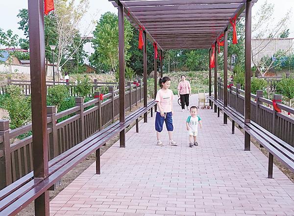 在“三边四化五美”工作中,各乡镇不等不靠,结合实际情况,认真做好村庄布局规划。在保留风土建筑、历史建筑、历史遗址遗迹、老井、老树的基础上,积极开展村庄布局规划设计。因路制宜、因水制宜、因村制宜、因院制宜,对路边、水边、村边净化、绿化、文化、美化。坚持资源再利用,按照因地制宜、因地取材原则,将拆除的旧砖旧瓦、石磨石磙等元素作为修建基础设施的“良材”,高标准建设街头游园。对村内、河道、沟渠、路边等处的“违旧废”建筑进行拆除,利用拆除下来的木料、砖瓦等废旧物料,建造围栏、花墙等,努力实现生态效益、经济效益和社会效益相统一。对村内废旧院落、空闲地进行改造,建设乡愁馆、小游园,在群众门前屋后打造“一米菜园”“一米花园”“一米果园”和“半亩方田”。保护好原有坑塘,对于已经形成的坑塘进行清淤治理。坑塘治理时,只允许挖大,不允许深挖,坚决杜绝溺水事件发生。通过放养鱼苗,种植蒲苇、菱角等办法,对黑臭水体进行治理,打造“水清、岸绿、景美”的水生态景观。按照“廊道林荫化、农田林网化、村庄林果化、庭院花园化”的目标,以及“村在林中、房在树中、人在绿中”的要求,实施“一村万树”工程,坚持不挪移村内原有大树、老树,优先选用国槐、楸树等本地树种及不人为挖坑造景的原则,对道路两侧、河道滩涂、坑塘四周、村内大街小巷进行绿化、美化,宜树则树、宜草则草、宜花则花,形成绿不断线、纵深成林、四季有花的生态林网。全县农村由昔日的“脏乱差”变成了如今的“绿净美”,实现了村庄美丽、庭院整洁、乡风文明,群众满意度和幸福感明显增强。