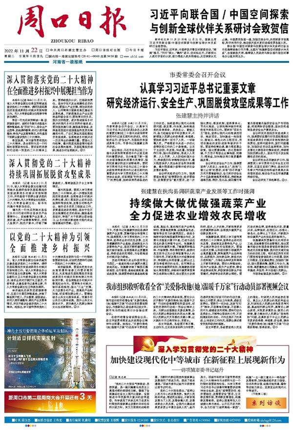 会议研究经济运行工作,强调要坚决落实“疫情要防住、经济要稳住、发展要安全”重大要求,进一步强化责任、落实机制,坚持清单化、节点化推进,以拼抢精神做好年底收官冲刺各项工作。要树牢“项目为王”理念,坚持以现代化标准谋划项目、推进项目,加快建设一批信息化、智能化、绿色化的工程项目,用项目建设的实际成效考核评价干部。要坚持统筹协调,着力落实惠企政策、强化要素保障、优化营商环境,千方百计帮助企业解难题、挖潜力、增效益,加快推动周口高质量跨越发展。