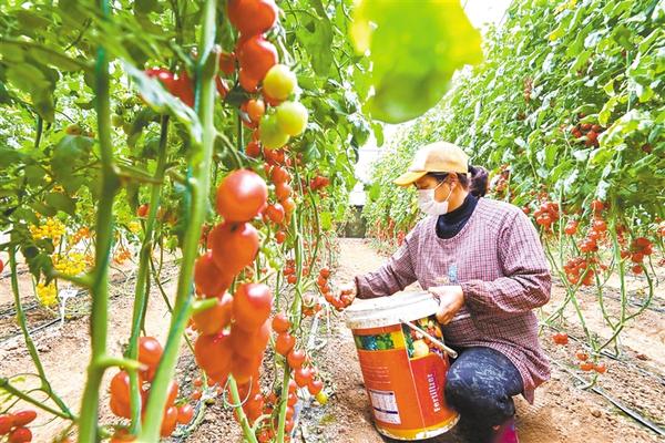11月22日,在山东省青州市益都街道一农业科技示范园,农民在采收圣女果。