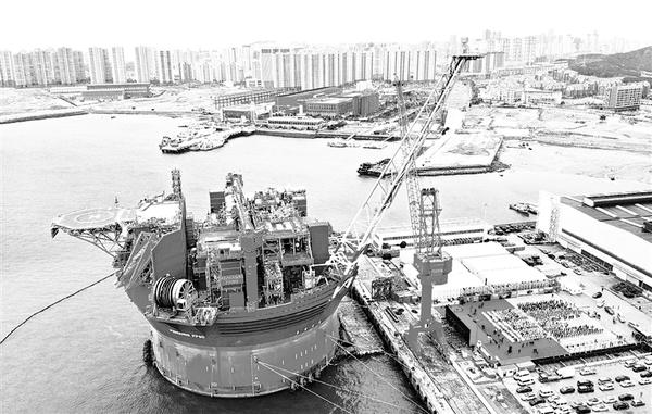 这是11月29日在山东青岛拍摄的企鹅圆筒型浮式生产储卸油装置(FPSO)交付现场(无人机照片)。当日,由海洋石油工程股份有限公司为英国业主量身定制的“海上油气巨无霸”——巨型智能集成化圆筒型浮式生产储卸油装置(FPSO)在山东青岛顺利交付。该装置整体高度118米,总重约3.2万吨。新华社发