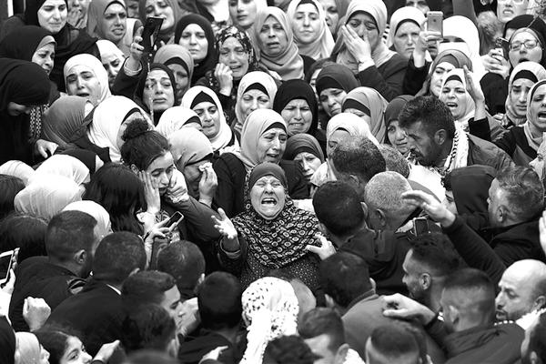 11月29日,在约旦河西岸城市拉姆安拉附近的拜特里马,人们参加被以色列军队打死的巴勒斯坦人的葬礼。