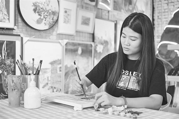 2022年12月3日,吴思萍在爱心画廊创作丙烯画。 福建省泉州市有一家义卖手工艺品的爱心画廊,它是专为特教学生设立的就业平台。据了解,爱心画廊从2021年成立至今,已有超500名特教学生从中受益。 新华社发