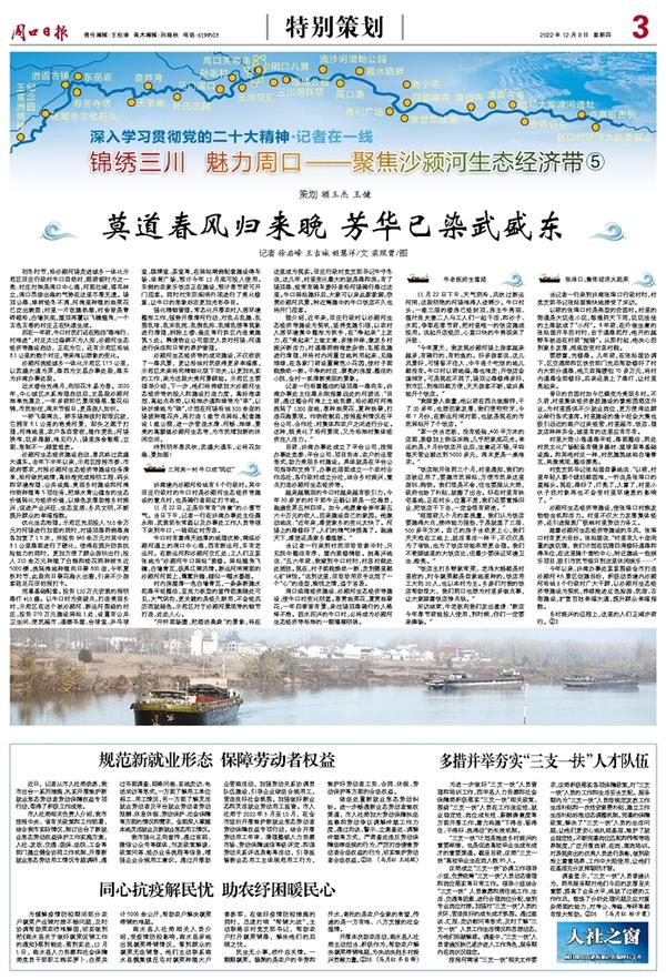 沙颍河生态经济建设启动,春风终过武盛大道东。去年下半年以来,示范区按照市委、市政府要求,对照沙颍河生态经济带建设任务清单,沿河依托地情,高标准完成照明工程、码头和环境治理、公共设施、美丽乡村建设和河滩作物种植等5项任务,把绿水青山蕴含的生态价值转化为经济价值,以绿色发展助推乡村振兴,促进产业兴旺、生态宜居、乡风文明,不断提升群众的幸福指数。