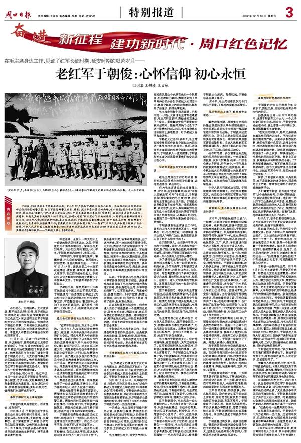 不忘初心,方得始终。无论走多远,都不能忘记来时的路。在宁都起义91周年之际,周口报业传媒集团《周口红色记忆》采访组和老红军于朝俊的大女儿于利利取得联系,听她讲述于朝俊的故事。于利利将父亲生前的文史资料、回忆录、生前事迹提供给记者,希望后人不要忘记幸福生活背后的艰苦岁月。