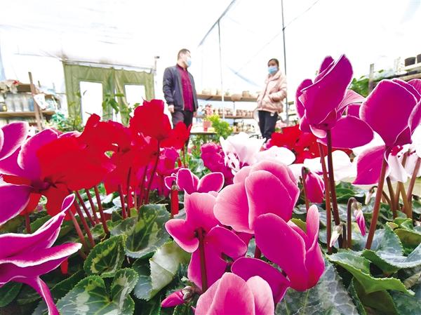 淮阳区豆门乡依托沙颍河生态经济带,大力发展特色产业种植,探索“观光农业+旅游”的发展模式,促进传统农业向绿色现代农业、质量效益型农业转变,助力村民致富增收。如今,豆门乡形成了果蔬批发、农业合作与规模养殖、苗木花卉瓜果种植、农业观光旅游等十多个特色产业同步发展的新格局。图为12月7日,游客正在豆门乡苗木花卉市场采购。 记者 刘俊涛 摄
