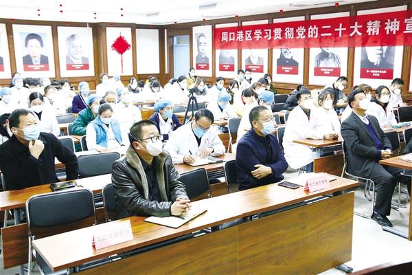 12月8日,学习贯彻党的二十大精神周口市委宣讲团在周口港区医院举办报告会,宣讲团成员向港区医护人员宣讲党的二十大精神。