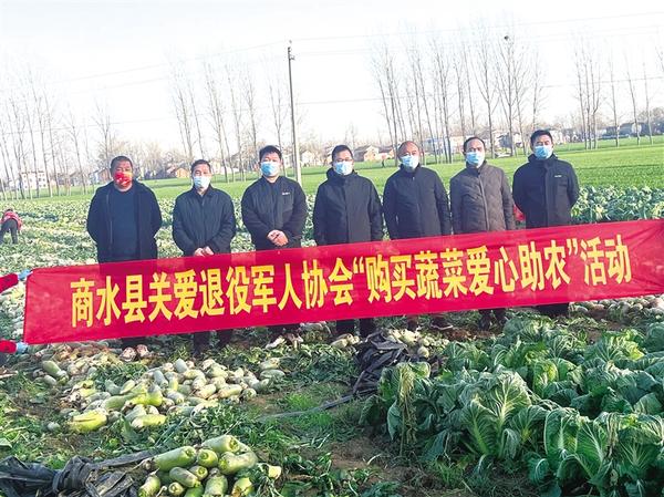 连日来,商水县关爱退役军人协会组织会员积极参与爱心助农活动,他们把采购的萝卜、白菜免费送给敬老院老人和脱贫户,此举赢得社会各界赞誉。图为商水县关爱退役军人协会会员深入田间采购蔬菜。记者 马治卫 摄