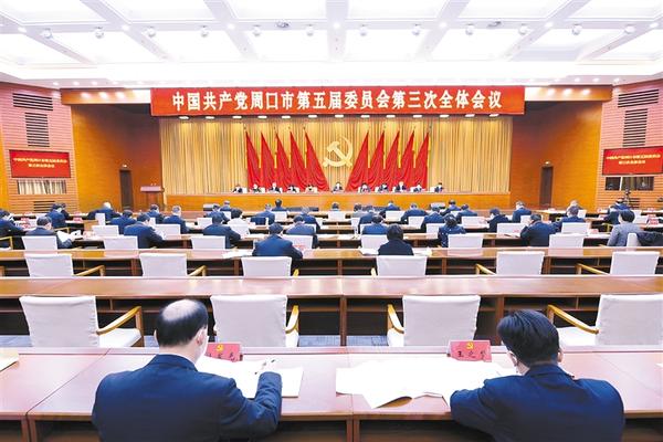 本报讯 (记者 王艳 吴继峰) 12月12日至13日,中国共产党周口市第五届委员会第三次全体会议召开。全会以习近平新时代中国特色社会主义思想为指导,深入学习贯彻党的二十大和二十届一中全会精神,深入贯彻习近平总书记视察河南重要讲话重要指示精神,贯彻落实省第十一次党代会和省委十一届二次、三次、四次全会部署,听取和讨论市委常委会工作报告,讨论市委常委会2022年抓党建工作情况专题报告,表决通过《中国共产党周口市第五届委员会第三次全体会议决议》,审议通过《中共周口市委关于深入学习宣传贯彻党的二十大精神全面建设社会主义现代化周口的决定》。