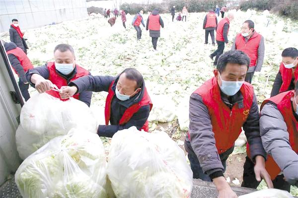 连日来,川汇区财政局聚焦群众的急难愁盼问题,持续开展“关爱你我他(她)·温暖千万家”行动,以实际行动为全区疫情防控和经济社会高质量发展贡献力量。图为该局20多名志愿者到城南街道办事处小王营行政村开展“蔬菜促销、爱心助农”公益活动,帮助菜农解决卖菜难题。记者 韩志刚 摄