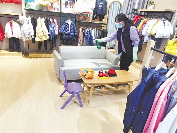12月13日上午,记者走进七一路上的万顺达广场,发现商场内营业人员和顾客都佩戴了口罩,商场工作人员正在开展消杀工作(如右图)。“肯定要戴的,我们会认真遵守防疫规定,在公共场所佩戴口罩。”正在商场逛的李女士说,进商场时,门口有工作人员提醒要佩戴口罩,如果在闲逛的时候拿掉了口罩,工作人员也会第一时间提醒顾客。
