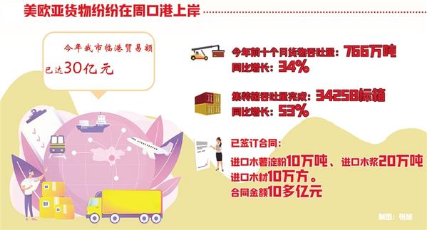 周口港不仅国内货物流通做得好,国际贸易同样出彩。(下转第二版)