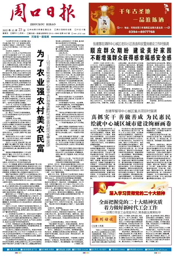 本报讯(记者 任富强 王艳) 12月22日,市委书记张建慧到中心城区调研老旧小区改造和安置房项目建设工作,强调要深入学习贯彻党的二十大精神,坚持以人民为中心的发展思想,扎实推进老旧小区改造提升和安置房建设,回应群众期盼,共建美好家园,努力让人民群众的获得感成色更足、幸福感更可持续、安全感更有保障。