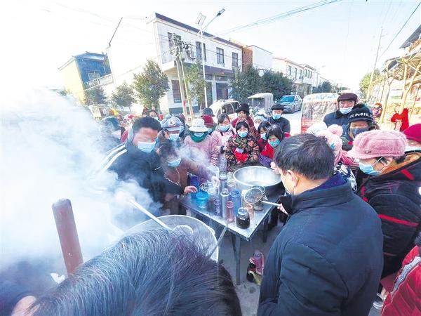 12月19日上午,西华县艾岗乡侯桥村干部侯洪亮、村医侯连营等人出资购买中药材,精心熬制中药汤剂,免费发放给群众,预防疫情。记者 张猛 通讯员 苏韵棠 摄