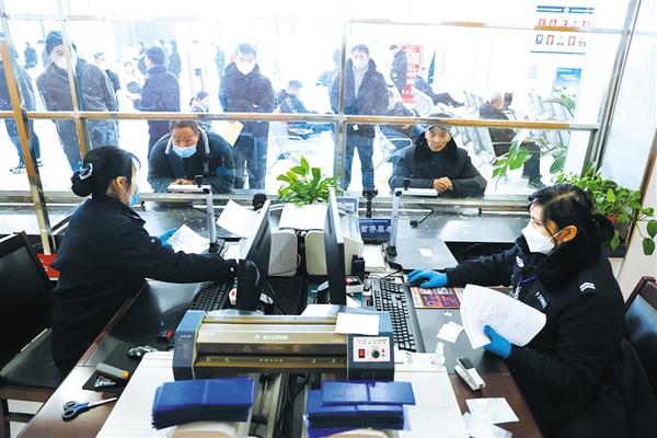 周口市公安局交通警察支队工作人员正在为驾驶员办理相关手续。为切实满足企业复工复产、群众办理车驾管业务的现实需求,结合我市当前疫情防控形势,周口市公安局交通警察支队决定自12月26日起,逐步恢复我市(含各县市区)车管所、机动车驾驶人考试中心、交通违法处理大厅等业务窗口的线下办理。记者 刘俊涛 摄