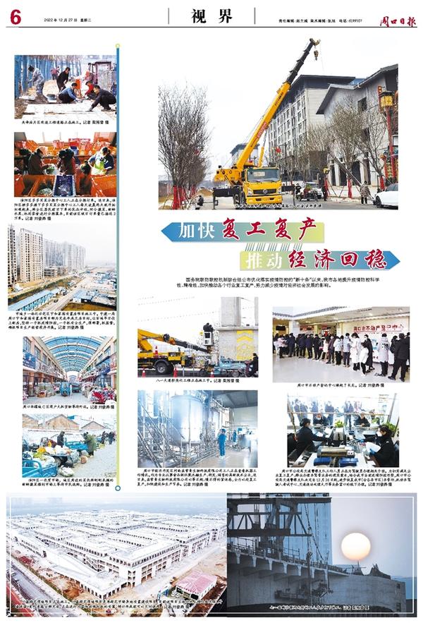 国务院联防联控机制综合组公布优化落实疫情防控的“新十条”以来,我市各地提升疫情防控科学性、精准性,加快推动各个行业复工复产,努力减少疫情对经济社会发展的影响。