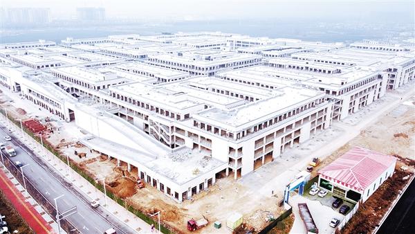 川盛荷花商城项目正在施工。川盛荷花商城项目是原荷花市场异地安置建设项目,目前该项目主体二次工程已经完成,外墙保温、室外道路全部完成,正在进行门窗和玻璃栏板的安装,预计年底前可以交付使用。记者 刘俊涛 摄