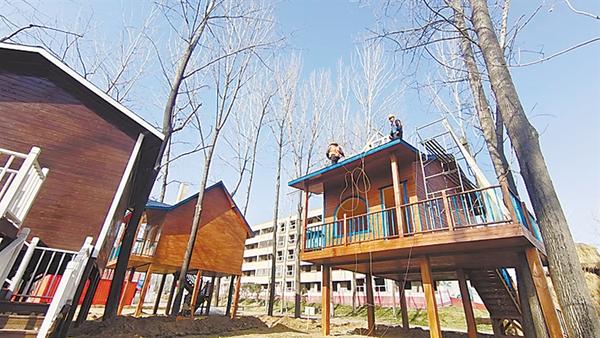 乡村的文化广场也热闹起来,孩子追逐嬉戏,老人悠闲地散步健身;