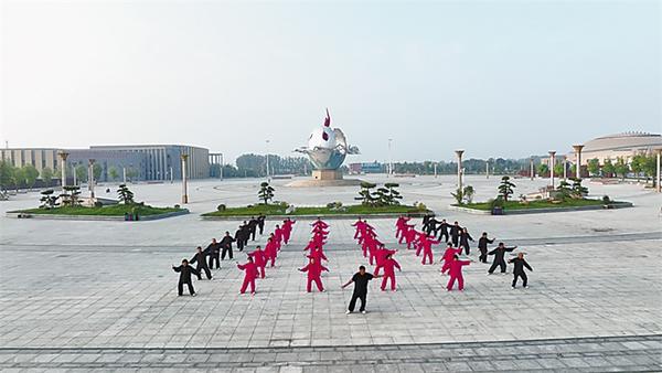 创世文化广场、街头小游园,市民三五成群,或带着家人闲庭信步,或凝神聚魂地打着太极;