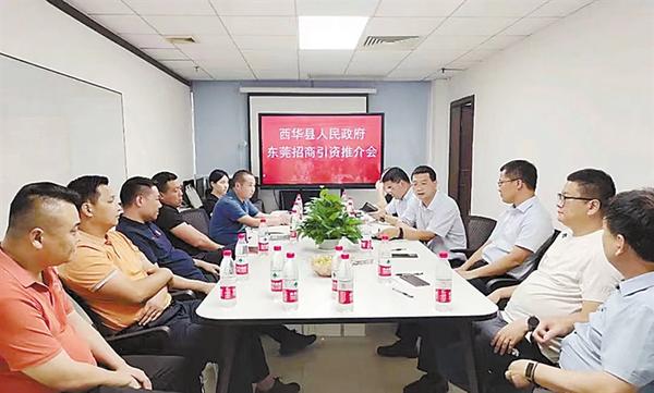 2022年8月17日,县委副书记、县长马昭才带领县商务局、县工信局、县工商联主要负责同志,到东莞市考察招商引资项目;2022年8月23日,县委书记田林带领县经开区、县财政局等单位主要负责同志,到广东省深圳市考察招商,分别会见了深圳国际控股有限公司董事局主席李海涛,比亚迪股份有限公司工程中心总经理林永康……2022年以来,西华县主要领导率先垂范,纷纷走出去,围绕智能零部件生产和食品加工两大主导产业,绘制“四张图谱”,开展“四个拜访”,大力招引“头部企业”及其上下游关联企业,着力打造两大百亿级产业集群,形成具有核心竞争力的支柱产业。