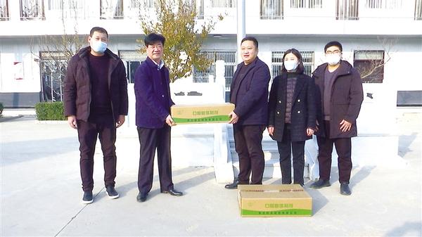 为助力周口港区深入开展“关爱你我他(她)· 温暖千万家”行动,保障港区群众的用药需求。近日,河南联创建筑工程有限公司为港区捐赠布洛芬8万颗粒,该公司副总经理孙峰磊(右三)到场捐赠,港区党委委员、管委会副主任李翔热情接待孙峰磊一行。记者 宋风 通讯员 李锐龙 摄