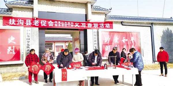 本报讯(记者 金月全 文/图)1月8日,扶沟县老促会组织部分书法家到该县姜鸿起烈士纪念馆开展主题为“传承红色基因 服务老区人民”义写春联活动,旨在进一步弘扬中华优秀传统文化,营造祥和的春节氛围,喜迎兔年新春。