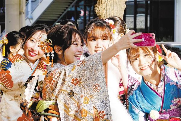 日本横滨:成人之日 1月9日,在日本横滨,几名参加成人礼仪式的青年女子拍摄合影。 当日,青年男女在日本横滨参加成人礼,庆祝自己成年。根据日本自2022年4月1日开始施行的《民法》,成人年龄由原来的20岁下调至18岁。每年1月的第二个星期一,日本各地会为年轻人举办成人礼仪式和活动。 新华社记者 张笑宇 摄