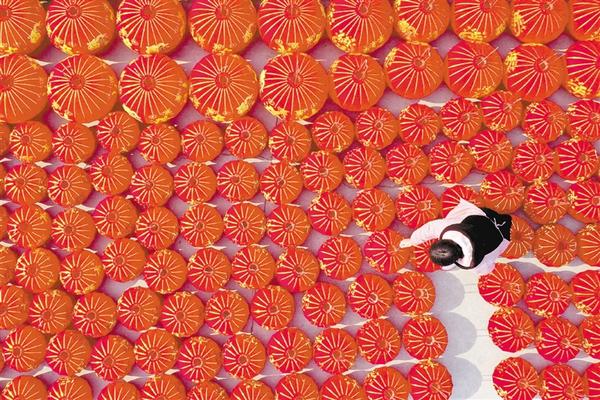 1月10日,焦作市温县赵堡镇赵堡村一家灯笼作坊的工人在晾晒红灯笼。 春节临近,吉祥喜庆的大红灯笼日益走俏,河南省焦作市温县的灯笼作坊内一派红红火火的忙碌景象,村民们加紧赶制订单,供应节日市场。新华社发