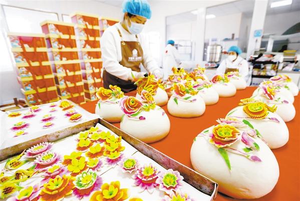 1月9日,山东省青岛市即墨区北安街道王宿庄村的农民在做花馍。 春节临近,山东省青岛市即墨区的农民赶制花馍等传统面食,供应节日市场。即墨当地有过年做花馍的习俗,寓意新的一年日子红红火火,生活蒸蒸日上。 新华社发