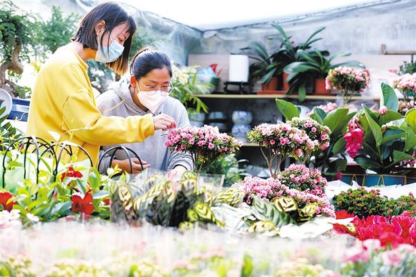1月10日,人们在河北省石家庄市赵县韩村镇小吕村花卉基地选购鲜花。 春节临近,各地年货市场红红火火,人们忙着选购年货,喜迎新春佳节。 新华社发