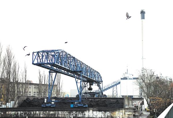 1月9日,德国柏林一家热电厂的机械设备在煤炭堆场作业。