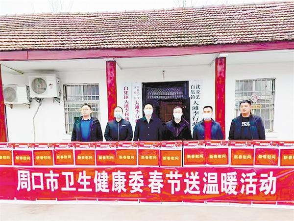 本报讯 (记者 刘伟 文/图) 1月13日上午,周口市卫生健康委党组书记、主任胡国胜,党组成员、副主任李波一行5人深入结对帮扶村沈丘县白集镇大滩李行政村开展春节走访慰问活动。