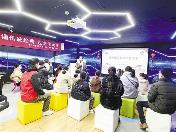 除大量新书外,周口市图书馆还为小读者们准备了经典诵读、VR科普体验、电影展播等文化大餐,多角度倡导全民阅读之风,为春节增添了浓浓的文化气息。1月24日,举办VR科普体验活动,小读者们在逼真的模拟场景中学到紧急避险的安全知识、体验到科技的魅力;1月25日,在“诵传统经典·过文化大年”的《论语》诵读打卡活动中,老师以故事为切入点,把高高在上的文化巨人带到孩子身边,生动地为小读者讲解《论语》中的教育理念与教育方法,让优秀文化典籍走进孩子心田,浸润孩子心灵(如图)。