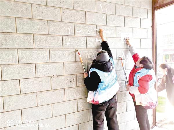 连日来,川汇区扎实推进“创文”工作,不断巩固创建成果,持续提升创建水平,确保一举创成全国文明城市。图为志愿者清理小广告。 记者 韩志刚 摄