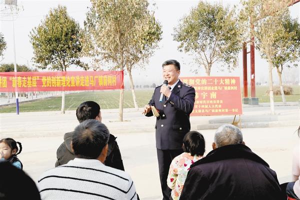当日下午,河南省新时代百姓宣讲员、周口市税务局驻太康县马厂镇前何村第一书记韩宇南在这里开展百姓宣讲员“新春走基层”党的创新理论宣讲活动,他用通俗易懂的语言,把党的二十大精神关于乡村振兴的内容融入快板书、河南坠子等表现形式之中,让村民在休闲娱乐的同时感受党的关怀和家乡的变化。