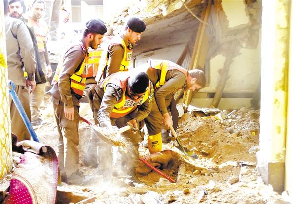 1月31日,在巴基斯坦白沙瓦,救援人员参与搜救行动。