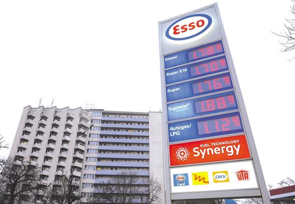 这是2月1日在德国柏林拍摄的一家加油站的油价牌。