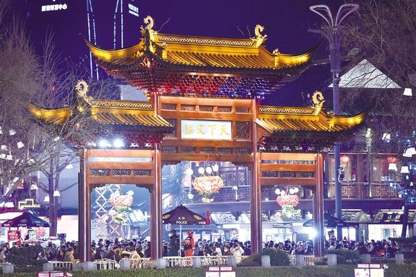 2月4日,游客在南京市夫子庙景区游览。 近期,江苏南京的第37届中国·秦淮灯会持续亮灯,璀璨夺目,吸引了大量市民游客前往赏灯游玩。人们在观赏花灯的同时,品味当地特色美食,选购旅游纪念品,点亮古都“夜经济”,让城市有了更多烟火气。新华社发