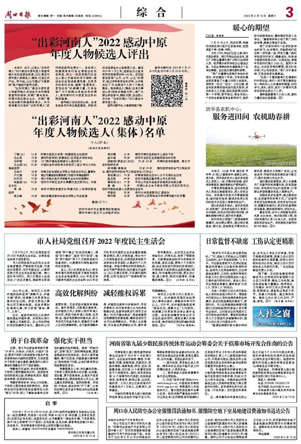本报讯 近日,记者从“出彩河南人”2022感动中原年度人物宣传推介活动组委会获悉,2022感动中原年度人物候选人(集体)已经正式产生。即日起,公众可通过“大象新闻”客户端进行宣传点赞。