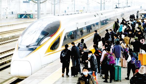 2月15日,旅客在河南洛阳龙门站乘车出行。 当日,2023年春运迎来最后一天。数据显示,今年春运全国铁路、公路、水路、民航累计发送旅客超过15亿人次。新华社发