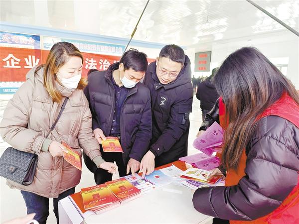 近日,鹿邑举行“春风送暖”大型招聘会,县司法局借此活动开展普法宣传,向求职者和企业宣传法律知识,为求职者和企业提供法律服务,受到一致好评。图为普法志愿者向求职者宣传法律知识。