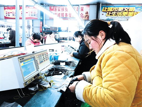 2月16日,沈丘县付井镇赵口村创办的微小电子厂,40多名巾帼“技术蓝领”在流水生产线上组装订单电子元件。近年来,沈丘县妇联抢抓政策机遇,广泛组织动员妇女开展“人人持证 技能沈丘”巾帼技能培训,让闲置在家的留守妇女掌握一技之长。 谢辛凌 摄