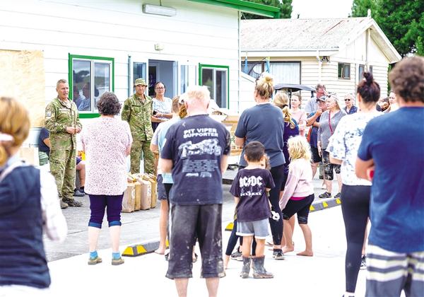 2月16日,新西兰国防军在新西兰北岛东部灾区为民众分发物资。