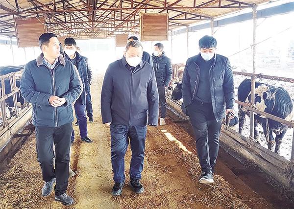 近日,农行郸城支行全力服务“三农”,对粮食收购、农资经营、涉农商超、种植、养殖等行业出台专项信贷审批方案,提高授信额度,助力乡村振兴。图为农行周口分行副行长张晓春与该行工作人员调研肉牛养殖经营情况,实施肉牛活体抵押贷款。记者 徐如景 通讯员 程飞帆 杨杰 摄