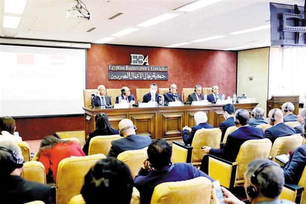 这是2月20日在埃及开罗拍摄的中埃企业家研讨会现场。