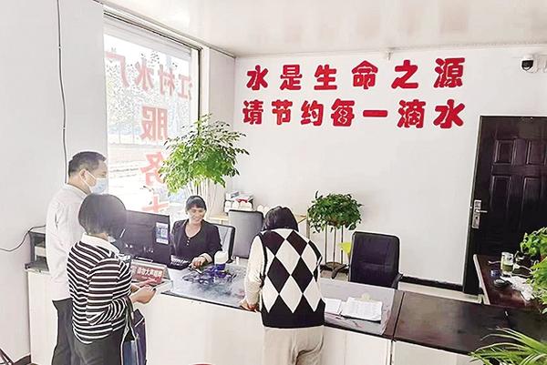 近年来,扶沟县加大资金投入力度,为全县每个水厂都建设了收费大厅,统一制定各项服务制度,将政策咨询、水费缴纳等事项纳入窗口办理。图为群众在收费大厅办理业务。白志远 摄