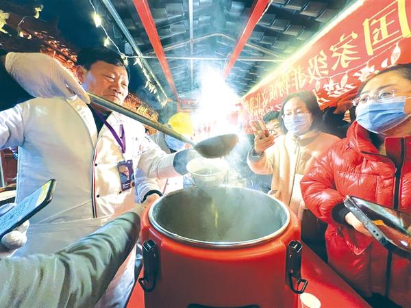 2月18日,首届中国非物质文化遗产保护年会在陕西省榆林市举办。国家级非遗代表性项目逍遥胡辣汤精彩亮相此次年会。图为非遗传承人高群生在活动现场熬制胡辣汤。记者 张猛 通讯员 高朋 摄