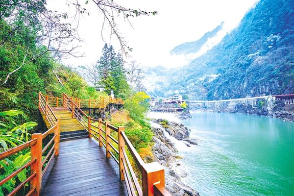 这是2月22日拍摄的云南省福贡县施底村秘境湾景点的沿江步道。