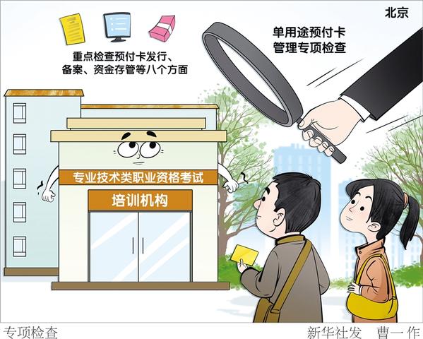 为破解群众集中反映的“预付式消费退费难”问题,促进专业技术类职业资格考试培训机构健康发展,北京市近日启动专业技术类职业资格考试培训机构单用途预付卡管理专项检查工作,重点检查预付卡发行、备案、资金存管等八个方面。