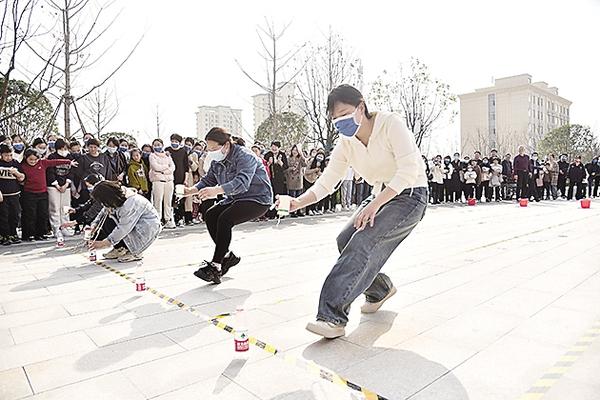 为迎接“三八”国际劳动妇女节,近日,郸城县人民医院新城院区举办“南水北调”“蒙眼击鼓”“摸石头过河”“一圈到底”“四人接力赛”等趣味游戏活动,县第一医健集团党委书记杨雨旺,该院副院长张广海与200余名职工一起参加了活动。 记者 徐松 通讯员 李涛 摄