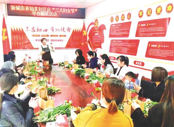 本报讯(记者 徐松 文/图)3月3日,在第113个“三八”国际劳动妇女节来临之际,郸城县新城街道福星社区举办插花艺术活动。